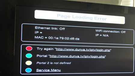 elektriğe takınız. Kısa bir süre sonra TV ekranında "Page loading error" yazılı